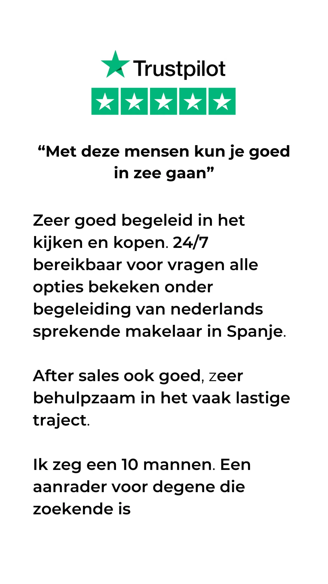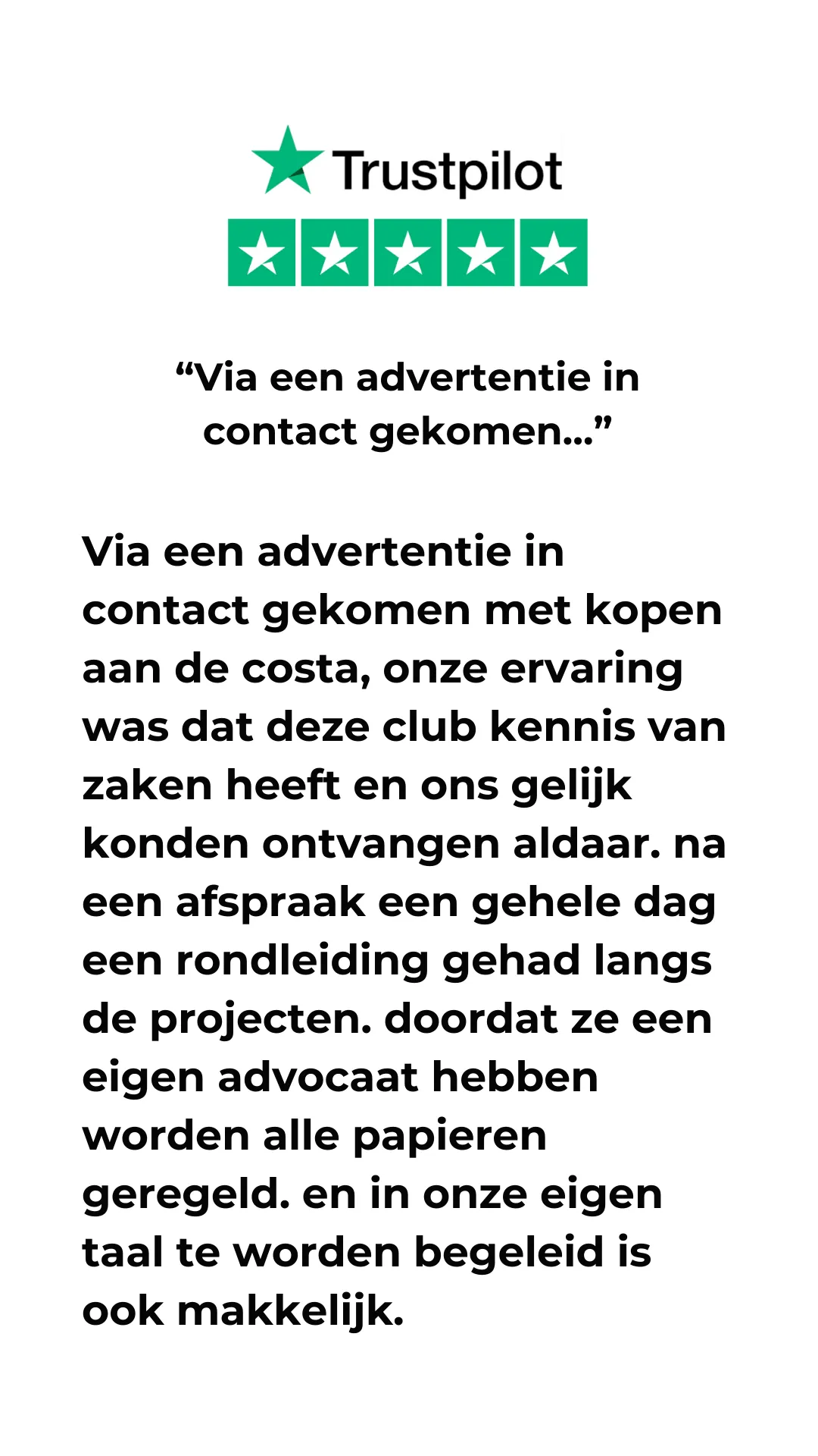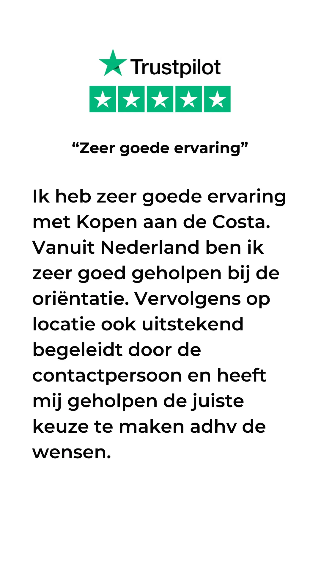 Met onze Kopen aan de Costa zoekservice maken we dit proces simpel en transparant. Dankzij onze gerichte aanpak en kennis van de Spaanse vastgoedmarkt kunt u vol vertrouwen uitkijken naar uw nieuwe thuis onder de Spaanse zon. Wij zorgen ervoor dat elke stap helder en doelgericht is. Onze belofte? Een vlotte, transparante ervaring zonder verrassingen.
